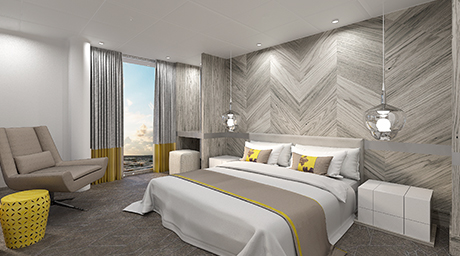 Iconic Suites Au sein des Iconic Suites, vous vous sentirez comme si vous étiez au sommet du monde. Situées en hauteur, elles offrent des vues panoramiques. Ce sont les suites les plus luxueuses et plus grandes de la flotte : chaque suite fait plus de 175 m2, sans inclure l'espace extérieur avec bain à remous et son mobilier sophistiqué. |
