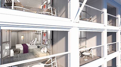 Dotées de grands espaces ouverts, les cabines laissent entrer l’ambiance extérieure grâce à des portes vitrées qui ouvrent sur votre balcon et à une infinité de fenêtres du sol au plafond – le Celebrity EdgeSM vous ouvre au monde depuis l’intérieur de votre cabine.