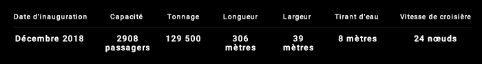 Il s’agit du tout premier navire à avoir été créé en 3D - chaque détail a été peaufiné jusqu’à atteindre la perfection. L’équipe de designers choisie en a d'ailleurs été récompensée de plusieurs awards..