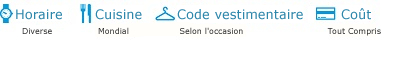 Vous souhaitez dîner chaque soir à la même heure ? Alors le dîner traditionnel est pour vous. Il vous suffit de choisir l'heure de votre dîner avant d'embarquer et d'en profiter comme vous le souhaitez.